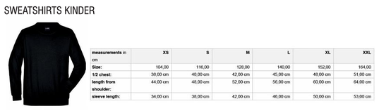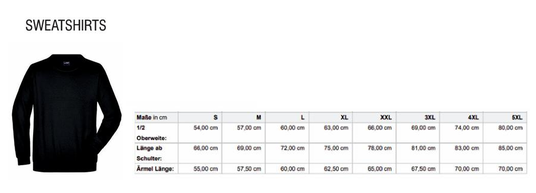 Sweatjacke Größentabelle