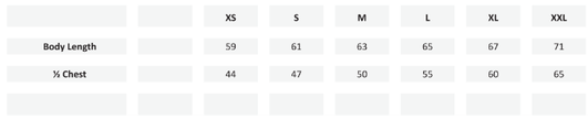 Softshell Größentabelle