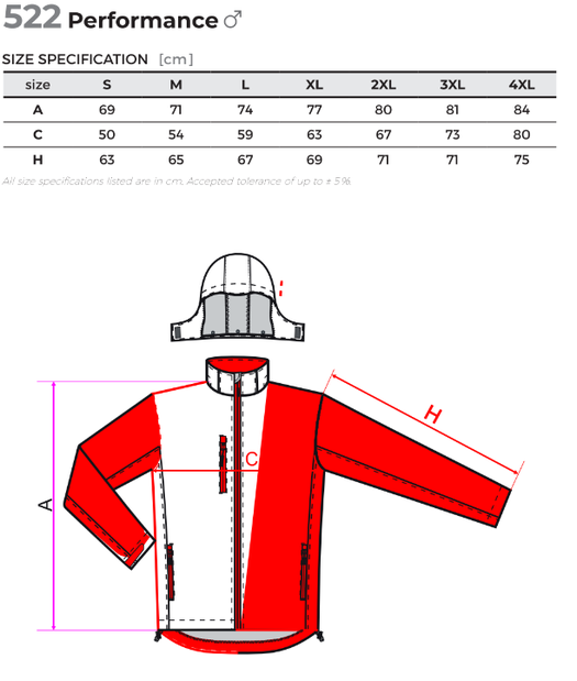 Softshell Größentabelle